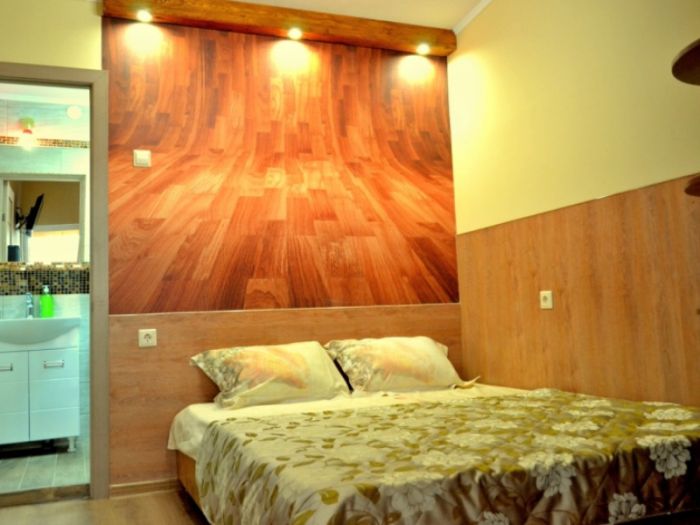 Двухместный номер с выходом на террасу и видом на море. Терраса с отдельным входом и садовой мебелью. На террасе установлен холодильник; Постельное бельё; Полотенца (кроме пляжных); Все кровати сделаны индивидуально из толстого массива дерева. Также в номере есть свой шкаф-купе с отсеком для вешалок и полками для вещей, а также открытым угловым элементом. В шкафу установлен сейф.
